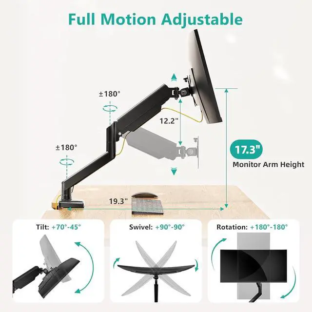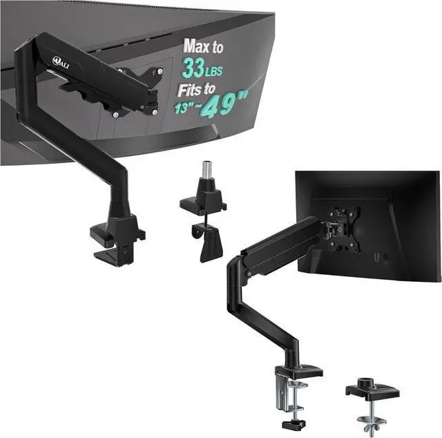 • THE ONE-STOP SOLUTION FOR YOUR DESKStop worrying about compatibility or complicated setups. This single monitor arm with desk mount supports 1749 inch flat, curved, and ultrawide monitors with a max load of 33 lbsdesigned as your final upgrade for gaming and home office use
