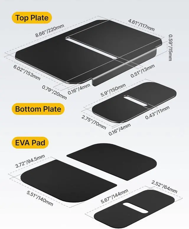 Enhanced Desk Protection & Stability The included 8.7"x6" steel reinforcement plate provides up to 40% larger contact area, distributing pressure evenly to prevent dents, cracks, or sagging on fragile desks such as glass, MDF, or particleboard. EVA padding prevents scratches and slipping.