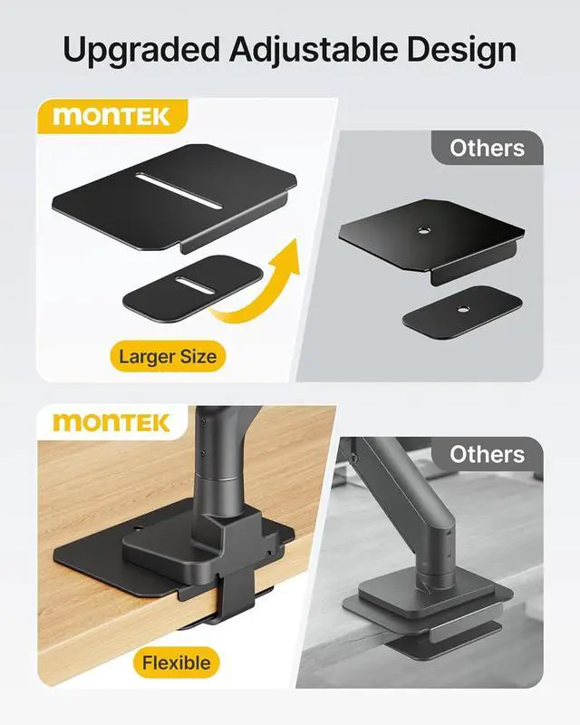 Complete Monitor Mounting Solution This bundle includes the monTEK Heavy-Duty Gas Spring Monitor Arm and the Adjustable Steel Reinforcement Plateperfectly paired for secure, stable, and flexible monitor installation. Ideal for 1757" ultrawide or curved monitors weighing up to 59.4 lbs. Using the reinforcement plate ensures safer mounting and better desk protection.
