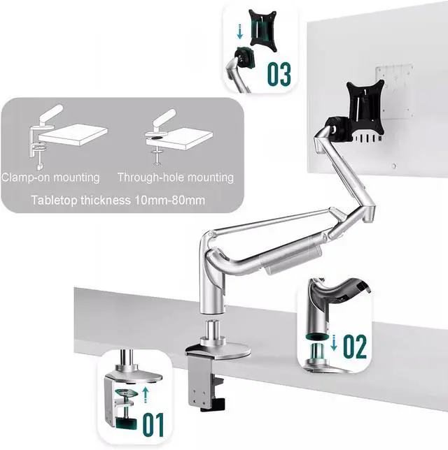 Sturdy Construction: The stand is cast from aluminum alloy for lightweight and high strength, and the stable gas spring and clamp/grommet base are sturdy enough to keep your single monitor setup safe and secure