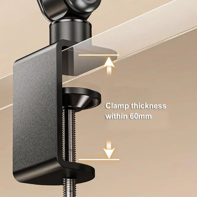 CLASE: aluminum y clamp attaches to s up to 60mm thick, such as desks, tables, nightstands, or counter. No drilling requiredsimply tighten with included wrench for stability.