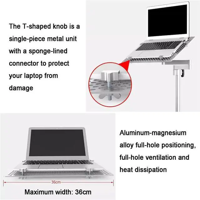Adjustable Angle: The arm of this monitor desk stand is fully independently adjustable. The laptop platform supports 135° adjustment up and down, 360° rotation horizontally, and a 35cm height adjustment range provides you with more options