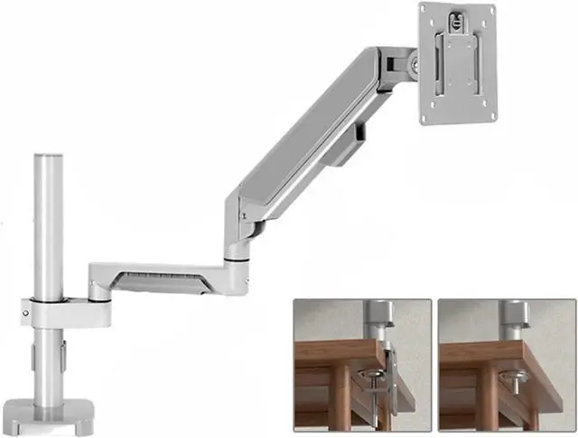 This gas spring single monitor mount is designed fits 17-32 inch screens, holds 4.4-19.8 lbs. The single monitor arm desk mount is suitable for VESA pattern 75x75 or 100x100mm.