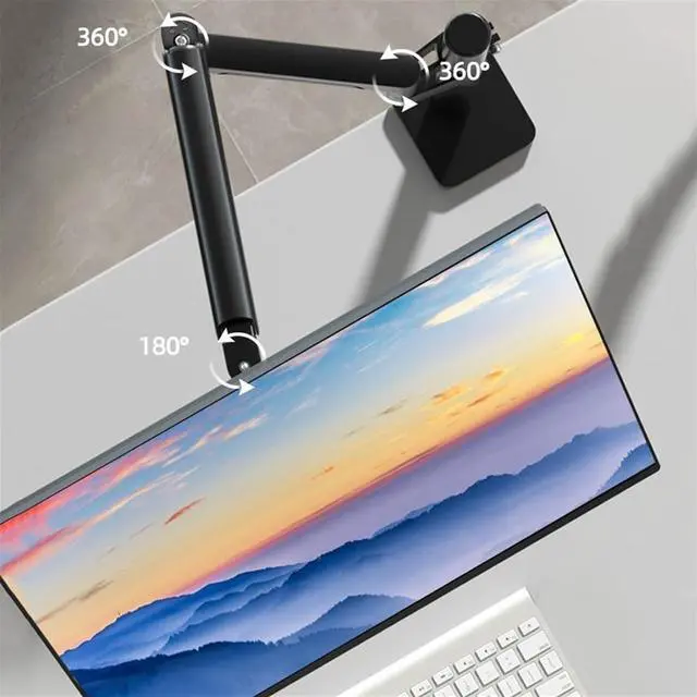 Fully Adjustable Single Monitor Stand : The single monitor mount offers +90° to -90° tilt, 180° swivel, 360° rotation. Our gas spring vesa monitor mount is easy to adjust, just push the monitor arm up or down with only one hand to accurately stop at the most comfortable height for you (up to 23.6 inch from the desktop)!