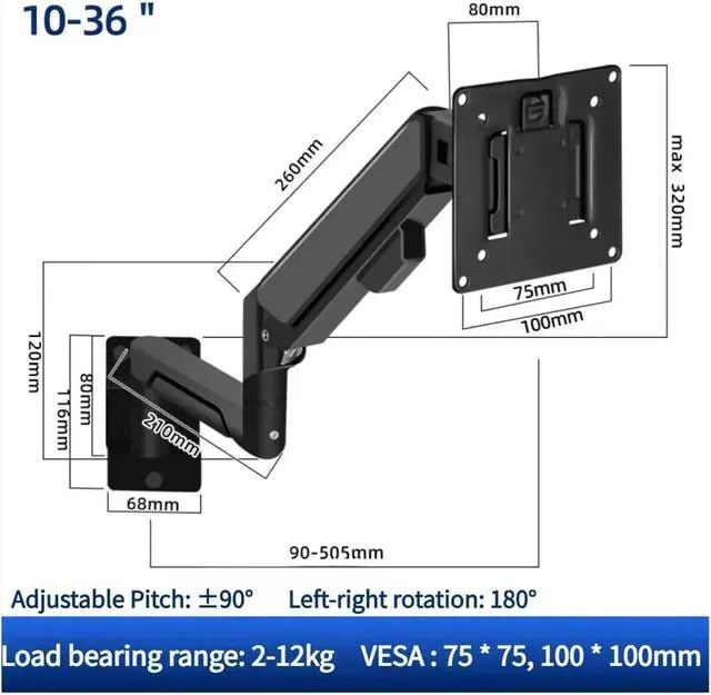 • Adjustable single monitor stand Gas spring monitor arm Desk clamp, through-hole or wall mount, maximum load capacity 36 inches 12 kg monitor arm