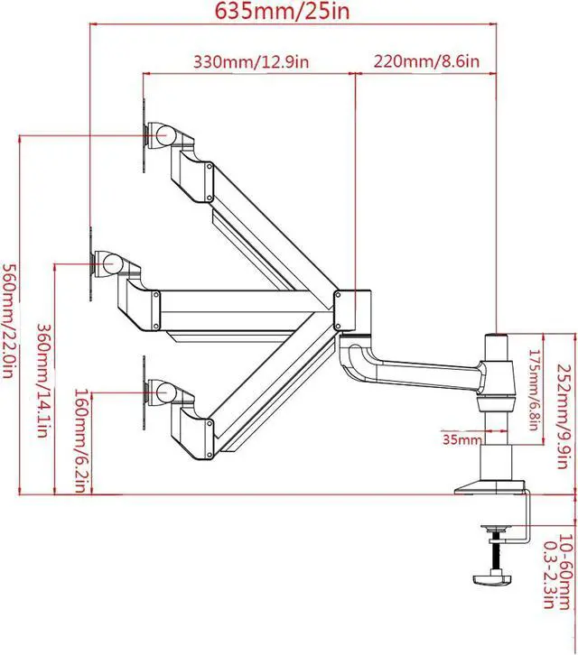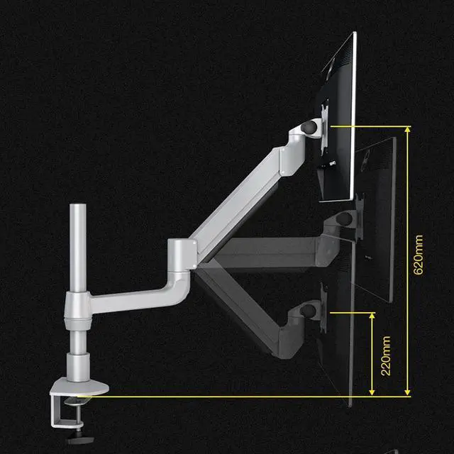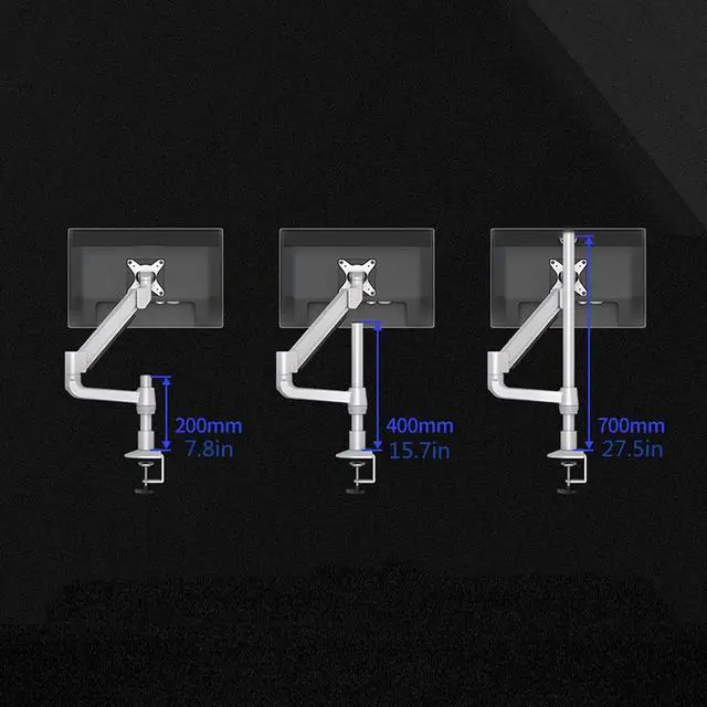 This pillar-type monitor stand can be installed on the edge of the desk or through the grommet hole. The maximum clamping thickness of the desktop is 2.3 inches, and the maximum thickness of the perforated desktop is 2.7 inches. Your desk will up a lot of space for your The workstations are spacious and clean.