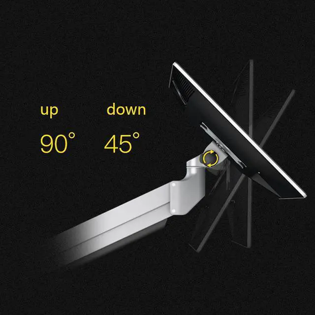 The gas spring single monitor stand can tilt your screen from -90° to +45° to reduce glare and get a better view. The rotation from -90° to +90° provides the position to work or play games with your friends and family, you can easily move the monitor horizontally and vertically, allowing you to work vertically