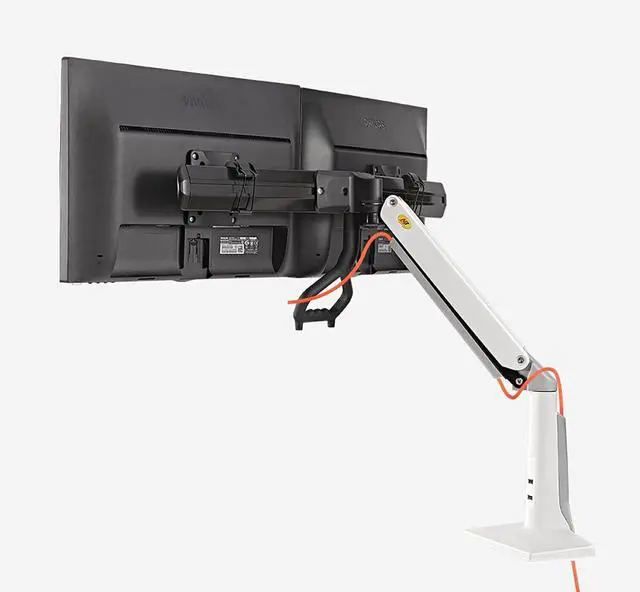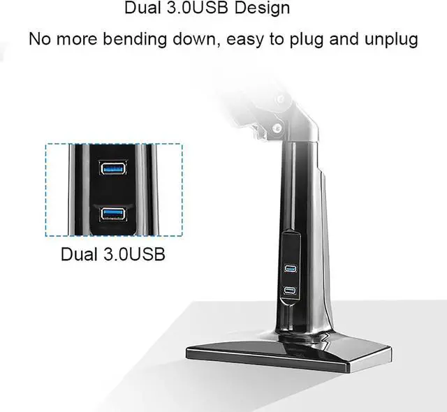 FREE UP YOUR DESK SPACE - Heavy-duty monitor arm with built-in cable control professionally helping to hide wires. The large sn is suspended, which can free up a complete desktop space and create a better working environment