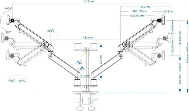 Fully Adjustable: The gas spring stand can tilt -55° ~ +90°, swivel +90°/90°, and rotate 360°, Max height is up to 20.0", and max extension is up to 20.6".
