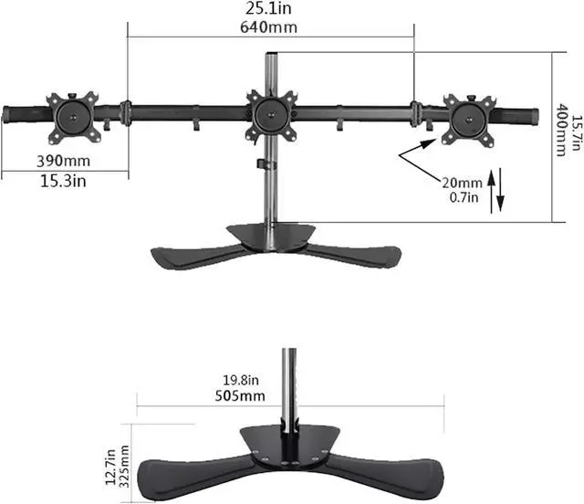 Universal compatibility: Suitable for monitors ranging from 17 to 27 inches and compatible with VESA mounting patterns of 75x75 and 100x100. Each arm can support monitors weighing up to 17.6 pounds.