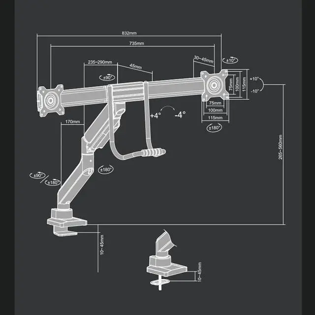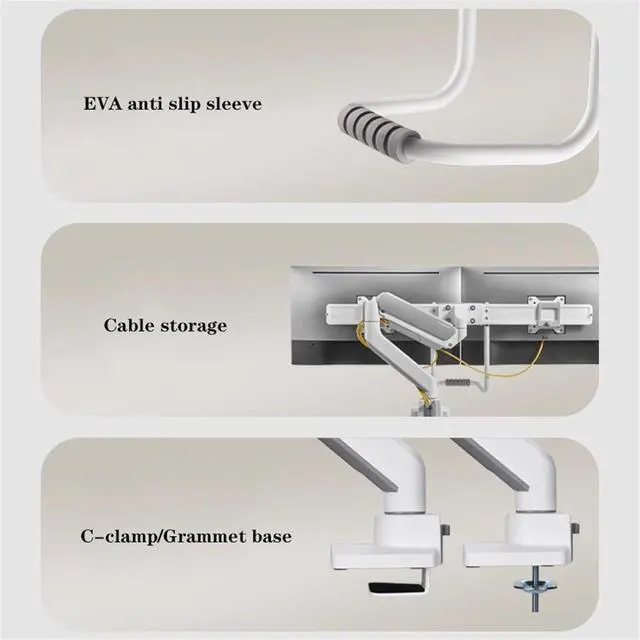This monitor arm can up valuable desktop space for a cleaner look. solves cable clutter, improves the comfort level, not only has a beautiful design, and is easy to clean