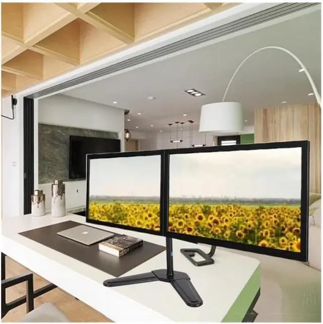 Fits 32" Dual Monitor Stand for Desk - This freestanding dual screen monitor mount widely fits two 10" to 32" LCD LED monitors, with VESA mount 75x75 and 100x100mm, holds up to 17.6 lbs per arm. (Please verify your monitors size and weight are within our standard before purchasing)