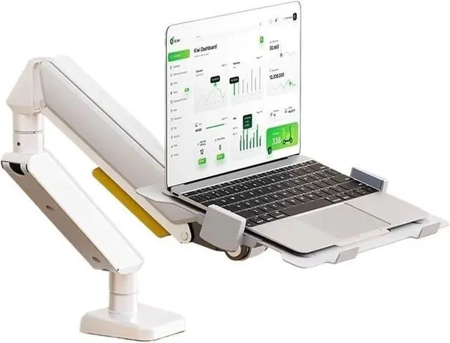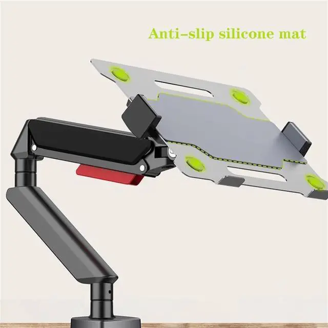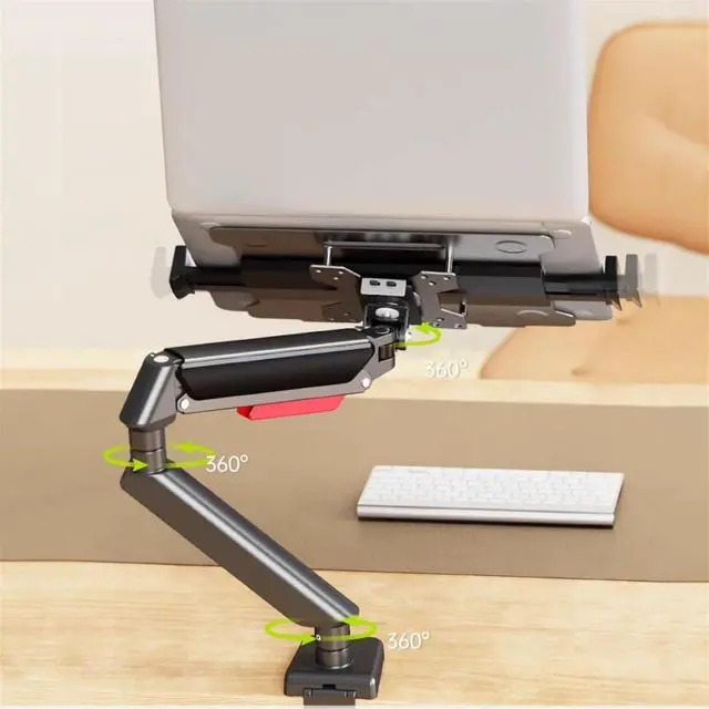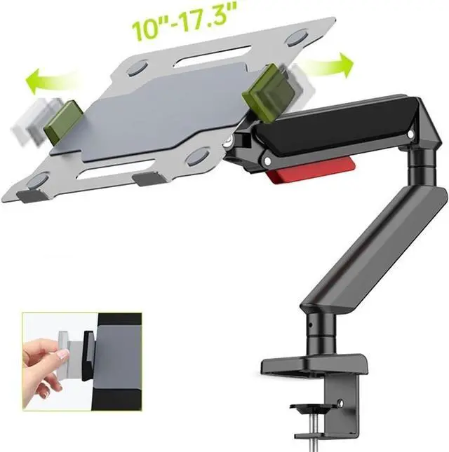 Laptop Mount with Adjustable Tray for 10-17\u201dNotebook, Full Motion Gas Spring Mount Arm for 17-32\u201dMonitor (Within 4.4~22.0lbs), C-Clamp and Grommet Base