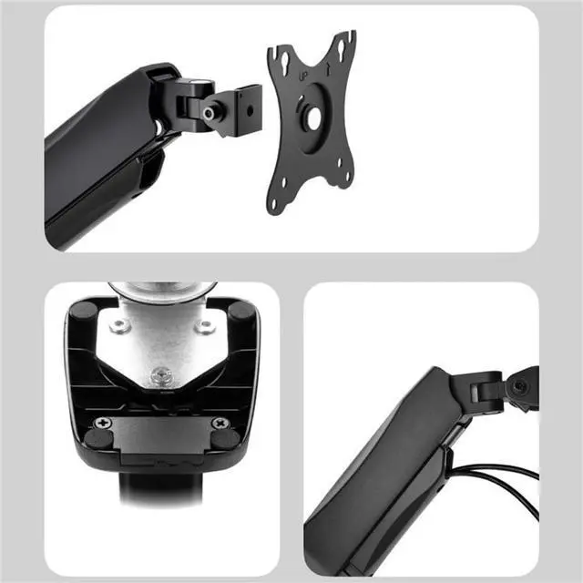 The monitor arm offers full monitor movement with 19.6" of arm extension and 9.8'' of height adjustment range. The dual monitor arm with a gas spring provides smooth and durable adjustments. Please adjust the tension of the gas spring arm properly according to the weight of your monitor.