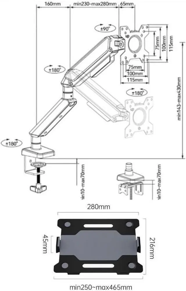With well-made sturdy aluminum alloy material, this 2 in 1 single monitor desk mount can hold up weight capacity of up to 22 lbs, and securely hold 17"32" monitors with VESA patterns 75x75 or 100x100mm or 10-17 laptop notebook. The steel laptop tray with holes provide better air flow and keep the laptop running cool for heat dissipation.