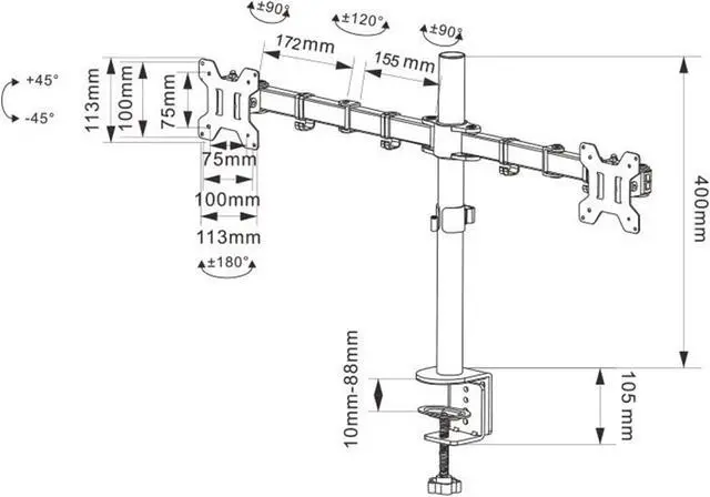 Full motion monitor bracket: Featuring +90°/-90° tilt, 180° swivel and 360° rotation for superb flexibility; Height adjustable for optimum viewing angle; perfect for multitaskers, designers, programmers, gamers alike.