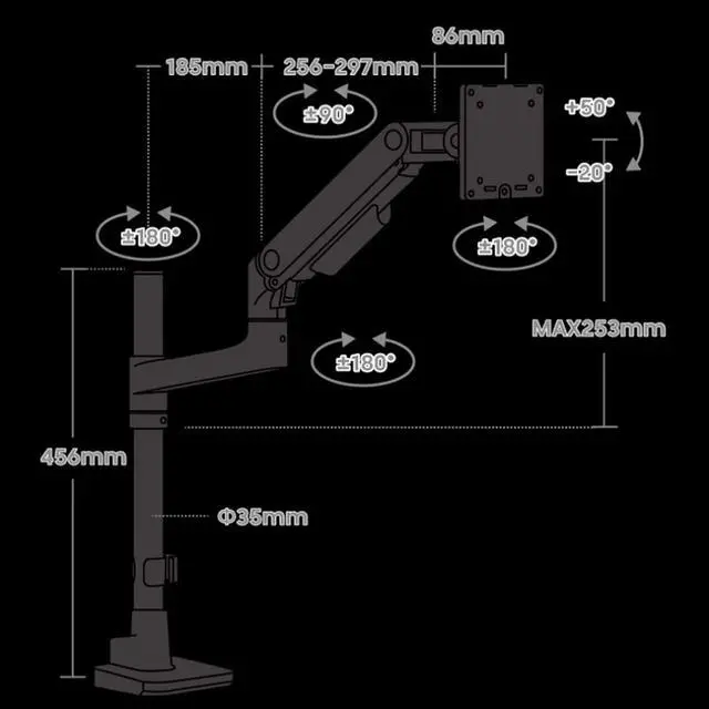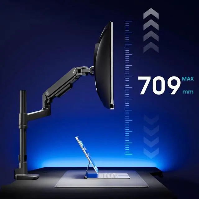 This monitor arm can free up valuable desktop space for a cleaner look. solves cable clutter, improves the comfort level, not only has a beautiful design, and is easy to clean