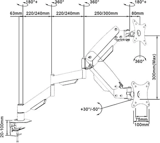 ADVANCED PNEUMATIC SPRING SYSTEM - The internal counterbalance gas spring adjusts to the weight of your monitor creating a suspended free-float effect, that allows to adjust monitor height more smooth.
