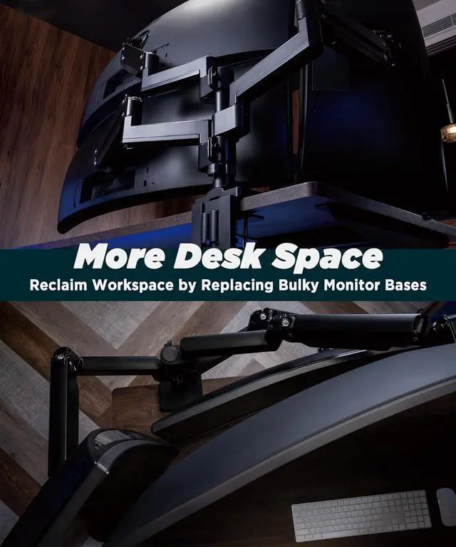 Fits Ultra Wide Monitors - Holds one screen weighing up to 44 lbs. Fits ultrawide monitors up to 57" and downward compatible 49" to 24" flat, curved up to 1000R screens. The quick-release VESA bracket has 75x75mm and 100x100mm mounting capability.