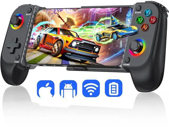 The controller supports both iOS and Android smartphones measuring between 3.9"–6.9" in length.