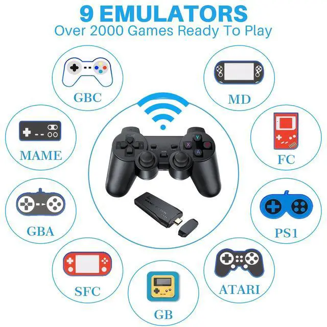 The classic game consoles is equipped with 2 free wireless controllers, enjoy with friends and family!