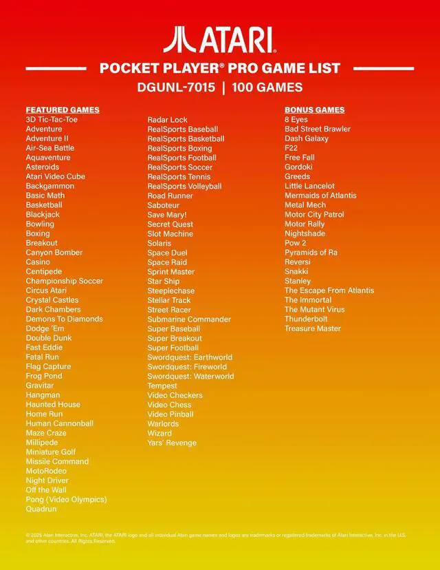 Officially Licensed: This is an officially licensed Atari titles, ensuring an authentic gaming experience, includes bonus games.