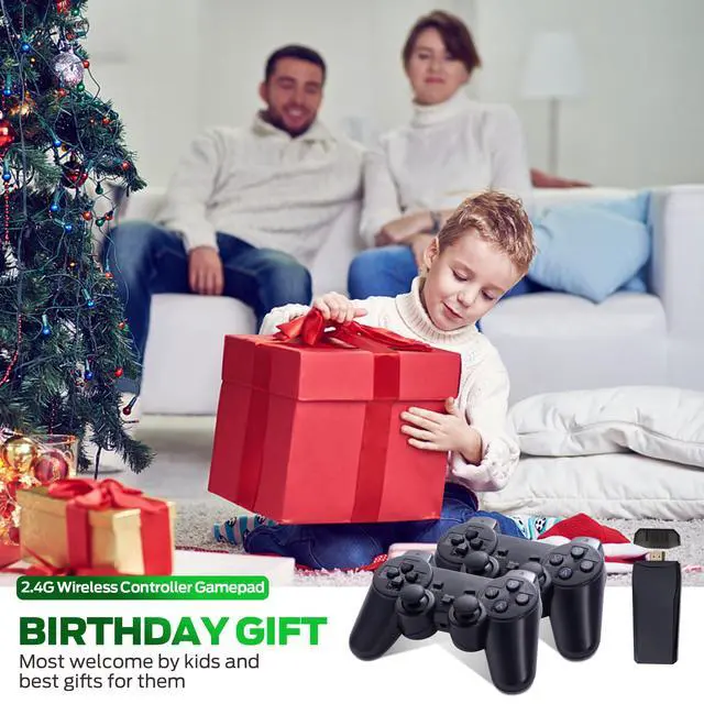 2.4GHz wireless game controllers: The retro video game console comes with two 2.4GHz wireless game controllers for wireless connectivity between the game controllers and joysticks. Play games from the comfort of your couch!