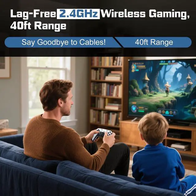 Dual Upgraded Wireless Controllers Lag-Free GamingDesigned for comfort and precision, our 2.4G wireless controllers ensure seamless, interference-free gameplay.