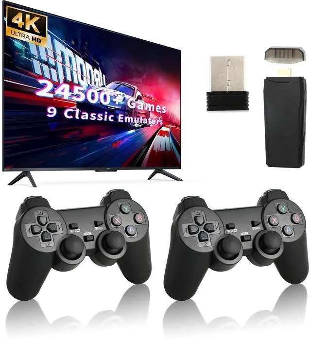 24500+ Rich Game Experience: This wireless TV game console has 24500+ classic games built in, no need to download or install anything, just connect to the TV or monitor, and pre-installed 9 emulators for various game formats, allowing you to relive your wonderful childhood memories.
