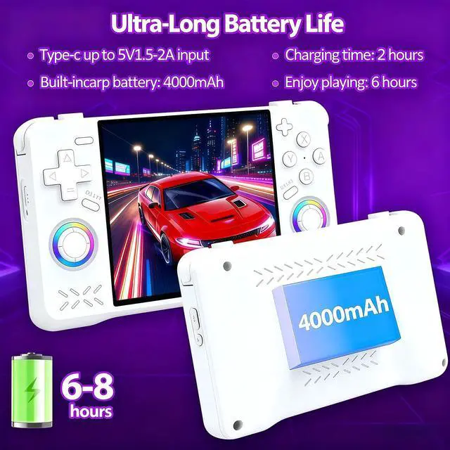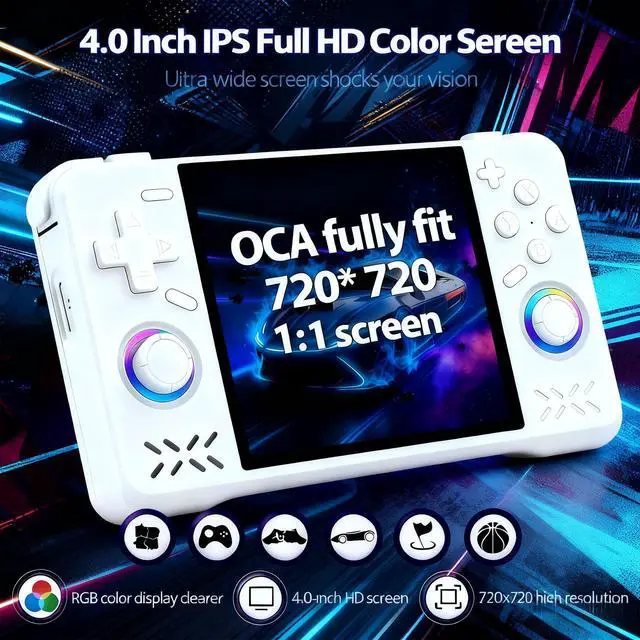 Stunning 4-Inch IPS OCA Full-Lamination Display: The MYCHA handheld game console features a brilliant 4-inch IPS screen with 720×720 resolution. With OCA full-lamination technology, enjoy vibrant colors and wide viewing angles for immersive retro gaming. Every scene comes to life with exceptional clarity and rich color performance, faithfully recreating the golden age of pixel art and classic game aesthetics. Whether you're exploring detailed RPG worlds or fast-paced action games, the game console display delivers an uncompromised visual experience.