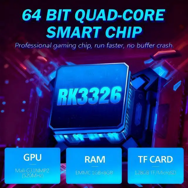 Powerful 1.5GHz 64-Bit CPU & Linux OS: The MYCHA game console is powered by a 1.5GHz 64-bit processor and open-source Linux system, supporting 8-64-bit games across 30+ emulators. The handheld gaming console's bug fix optimizations ensure smooth gameplay for 18,000 classic games. This powerful combination provides seamless emulation accuracy and stability, preserving the authentic feel of original hardware while enhancing compatibility across generations of classic titles.