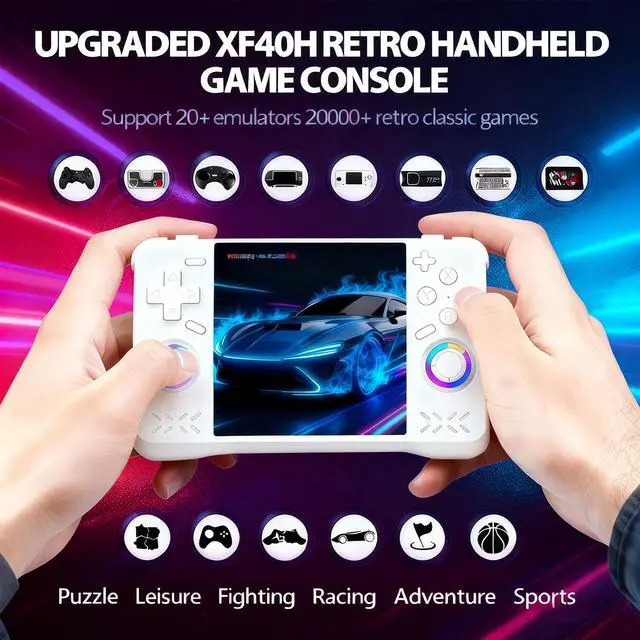 XF40H Retro Handheld Game Console 4-inch Full-Lamination Screen, Linux OS, 21000+ Classic Games, 4000mAh Battery, WiFi Multiplayer & Hall Triggers - Supports 2.4G Wireless Controllers (Black Set)