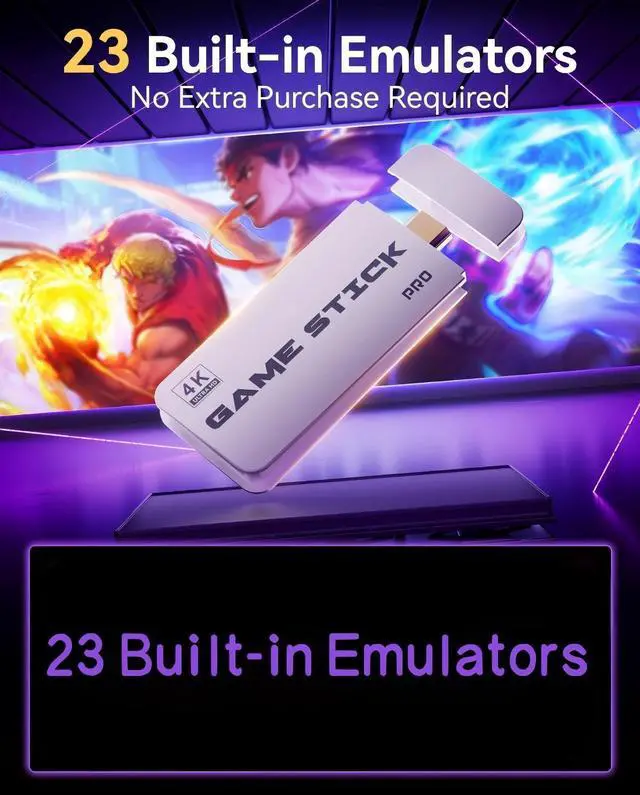 Immersive 4K HD experience: Retro gaming console supports 4K HDMI output and 1080P HD quality, connect to TV/projector to enjoy cinema-level game screen, game stick plug and play with built-in HDMI cable, save progress at any time without interruption.