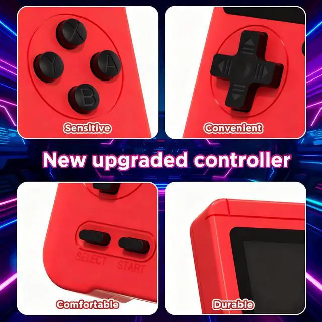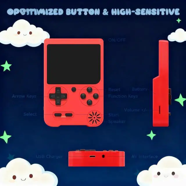 Ergonomic Design: Crafted with a compact, ergonomic body tailored for small hands, this console ensures a comfortable and secure grip during extended play. Upgraded buttons deliver responsive, tactile feedback for precise control, helping young gamers navigate levels with ease. Lightweight and portable, it's the ultimate companion for long trips, waiting times, or casual fun at home.
