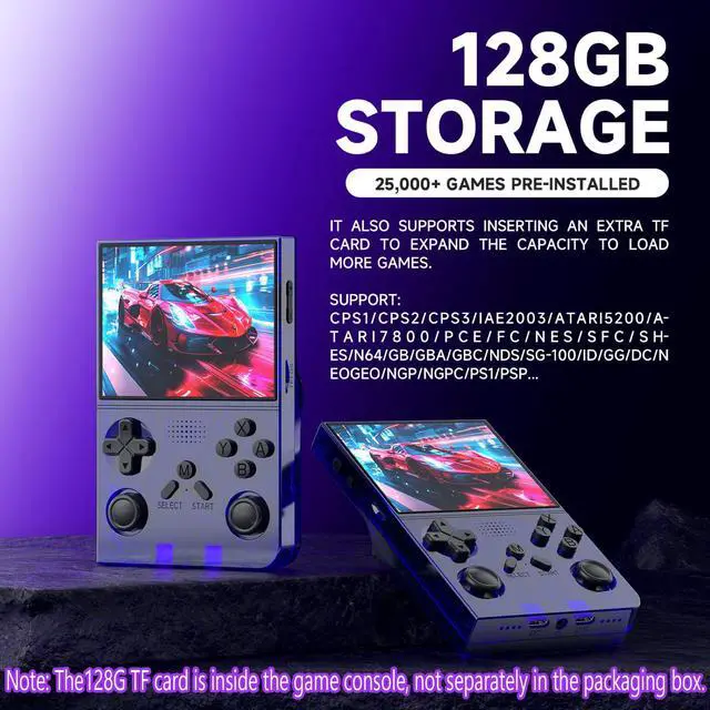 Open-Source System: The R40 features an open-source system, ensuring flexibility and compatibility. This makes it a versatile choice for gamers who appreciate customization and compatibility. 3.5" IPS Screen: Enjoy a clear and vibrant 3.5" IPS screen for an immersive gaming experience. The screen enhances your gaming sessions, making every moment engaging. 18,000+ Classic Games: Comes with over 18,000 classic games, providing endless entertainment options. You'll never run out of things to play. 128G TF Card: Includes a 128G TF card for ample storage. Save and access your games easily, ensuring you always have your favorite games on hand. 3000mAh Battery: With a 3000mAh battery, it's perfect for portable gaming on the go. You can enjoy your games anywhere, anytime. Ideal for Travel: This retro gaming console is ideal for travel, making it a convenient handheld emulator. Take your gaming with you wherever you go. Great Birthday Gift: The R40 is a great birthday gift or holiday celebration present. It's a standout choice for gamers looking for a unique gift. Modern Features: Combines retro gaming with modern features, making it a standout choice for gamers. It offers the best of both worlds.