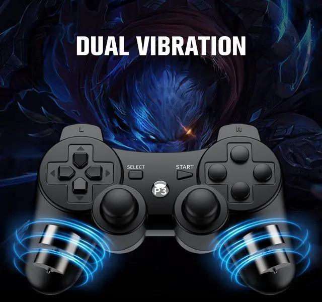 2 Pack Controller Compatible with PS3, Wireless Controllers with Dual Vibration, Motion Control, 2 Charging Cables