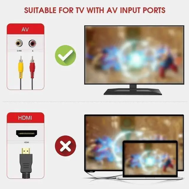 1. Mini Console supports AV TV, If yourTV has only HDM, please use an adapter to connect.