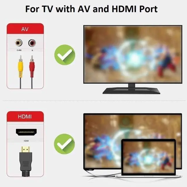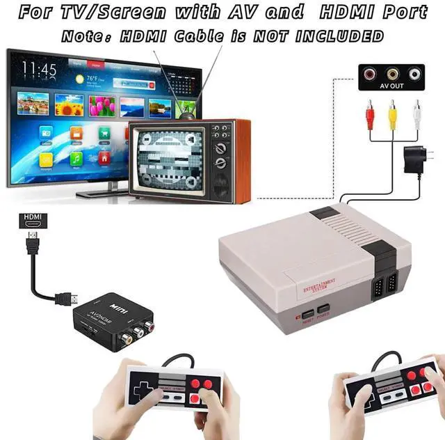 1. Mini Console supports AV TV, If yourTV has only HDMI, please use an adapter to connect.