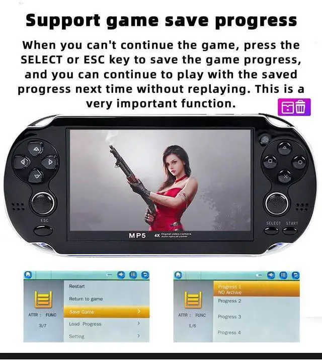 When playing the game, press the "ESC" key, the game menu will appear on the screen, enter "Save Game", select the progress number you want to save, and then press the A key. The game can save up to 6 progresses, and users can load different progresses to continue playing the game.