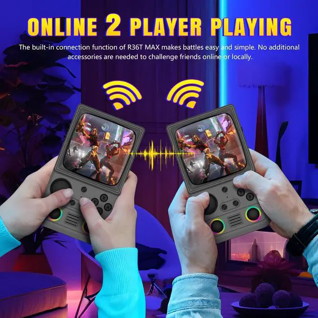Multiplayer & Online Connectivity Unlike R36S, the upgraded version R36TMAX retro gaming console has more comprehensive performance. Stay connected with built-in 5G WiFi support for online multiplayer matches and gameplay streaming. You can also pair compatible wireless controllers via 2.4G OTG for local co-op or competitive play with friends and family.