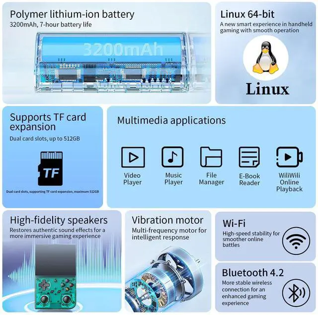The RG35XXPro isn’t just a handheld—it’s a versatile retro gaming hub. With HDMI output, WiFi multiplayer, and 2.4G wireless/wired controller support, enjoy games on the go or on the big screen. The built-in vibration motor amps up immersion, while online pairing lets you team up or compete with friends. Whether you’re gaming alone or hosting a retro showdown, the fun never stops.