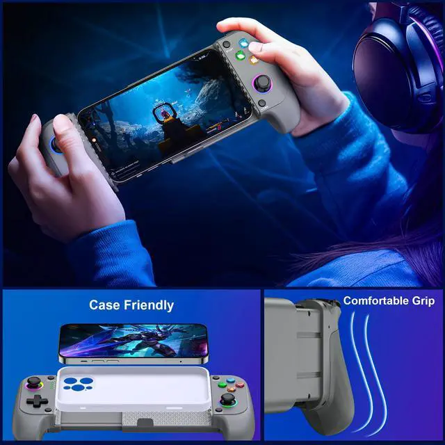 Stretchable Clip & Supports Phone CaseOur phone game controller is designed to stretch and suitable for phone with a length of 10-17.5cm.Compactible with iPhone 16/15/14/13/12 pro max,android,samsung phone.The contact surface of the mobile controller is equipped with a full rubber pad, which has strong abrasion resistance, avoiding the phone from falling off during intense gaming.There is also a notch at the bottom that can provide additional support