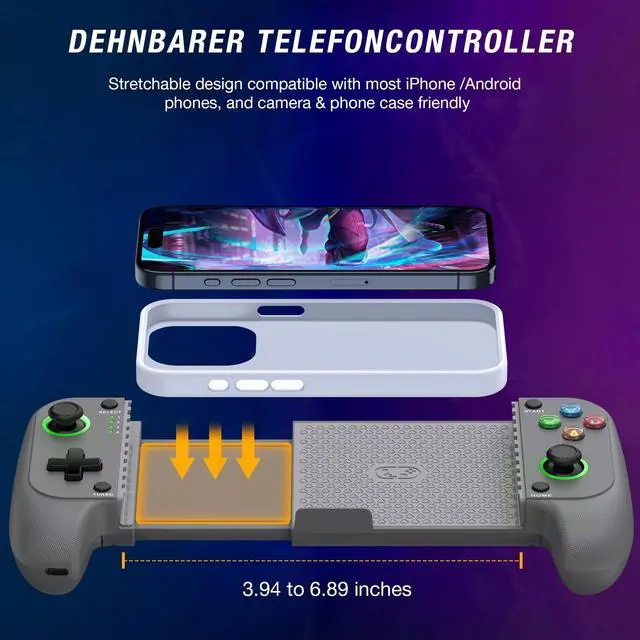 Stretchable and Adjustable Design: Our IOS Android mobile controller is designed to fit phones with lengths of 10cm-17.5cm. With anti-slip rubber pads, it won't slip or loosen while you play. Plus, you can leave your phone case on while you play