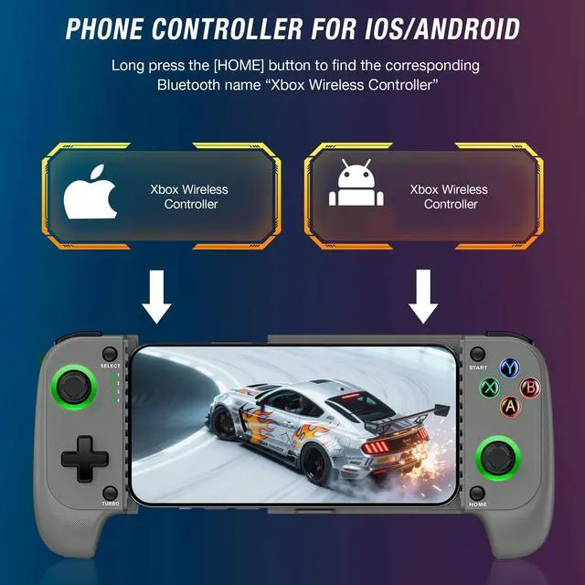 Seamless Bluetooth Connectivity: Our mobile gaming controller for iOS and Android devices works flawlessly with your phone's Bluetooth. Open Bluetooth Interface Long Press HOMEand LED4 is flashing Connect XboxWirelessController Short press [HOME] to connect again