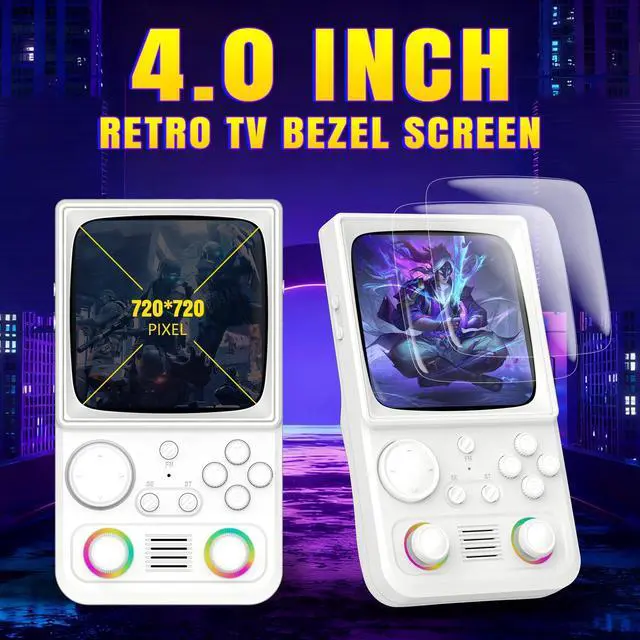 Retro-Style 4.0" IPS Display Enjoy crisp visuals on this portable retro game console with a 720×720 IPS full-view screen. OCA full-lamination and a nostalgic CRT-inspired bezel recreate the classic curved-screen aesthetic with vibrant colors and sharp detailsideal for authentic retro gaming console handheld sessions.