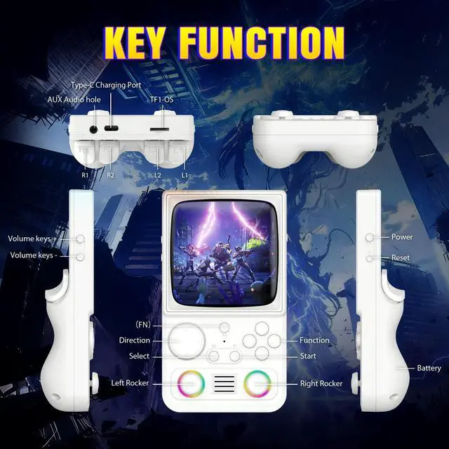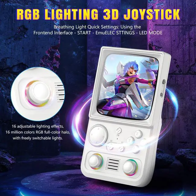 Precision Controls with RGB Lighting The handheld game console features a high-precision joystick for responsive gameplay, plus 16 millioncolor RGB lighting around the stick with 16 adjustable modes. Personalize your look or turn lights off for a minimalist setup on this stylish portable game console.