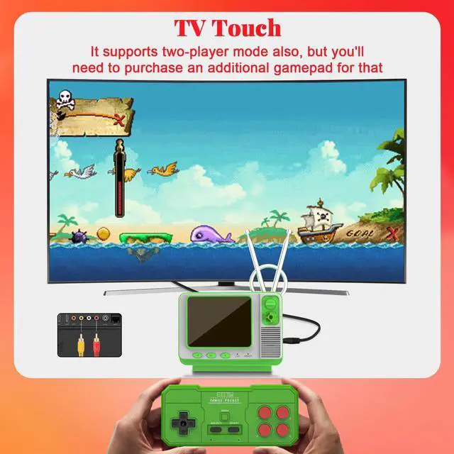 [TV Connectable & Big Screen 2-Player Battles] Transform your living room into a retro arcade! Use the included AV cable to connect the console to your TV for immersive big-screen fun. Please Note: To enjoy head-to-head 2-player competitive mode, an additional game controller is required (sold separately).Perfect for challenging friends and family to classic duels.