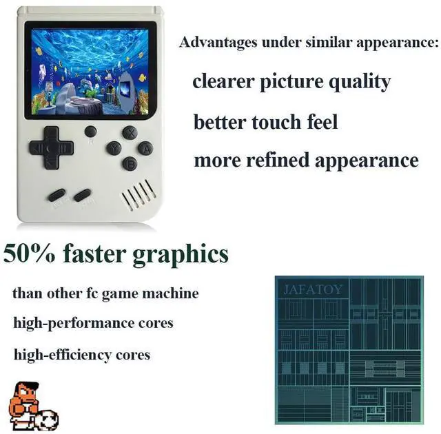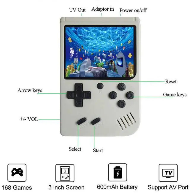 8Bit Handheld games built-in 168 retro FC classic games, let the kids to have happy hours with classic old school games.