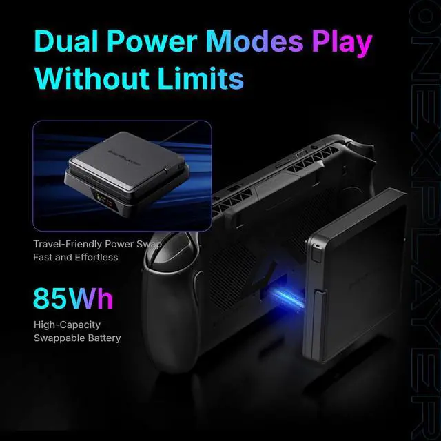 • REPLACEABLE BATTERY DESIGN: Removable external battery allows lighter handheld play or plug-in mode for extended high-performance gaming sessions with dedicated charging dock