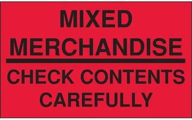 Instructional Handling Label, Language English, Primary Label Subject Shipping Contents, Message Header Interior Components, Message Mixed Merch., Check Contents, Label Width 5 in, Label Height 3 in, Material Adhesive Back, Paper, Background Color Red, Labels per Roll 500, Package Quantity 500. This item has been restricted from sale in the following state (s): []